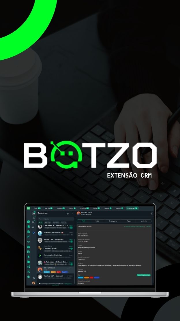 O BOTZO é uma extensão de CRM para o WhatsApp Web que automatiza e otimiza a comunicação com os clientes.